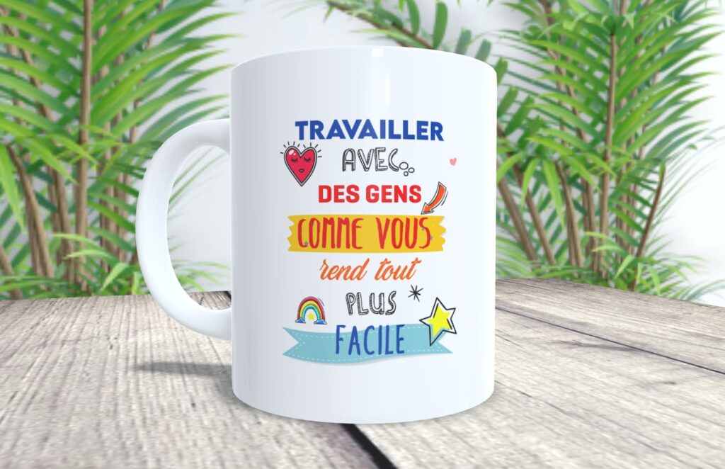 Imprimimos el diseño en papel especial y lo transferimos con calor sobre el objeto (taza, llavero, alfombrilla…).